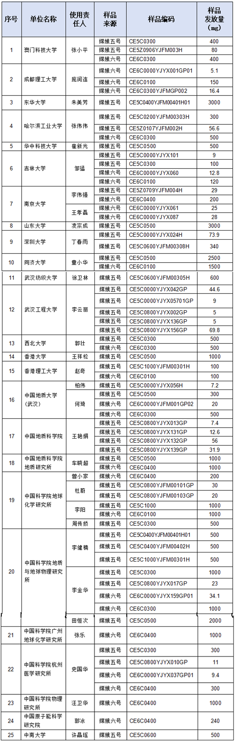 8月2日,中國探月工程發(fā)布關(guān)于發(fā)放國內(nèi)第九批月球科研樣品的公告。2025年7月,探月與航天工程中心組織召開了第九批月球科研樣品借用申請?jiān)u審會(huì)。經(jīng)月球樣品專家委員會(huì)評審,探月與航天工程中心審核并報(bào)國家航天局批準(zhǔn),最終25家科研機(jī)構(gòu)的67份申請獲得通過,對應(yīng)32名使用責(zé)任人,樣品發(fā)放量共計(jì)30881.8mg。