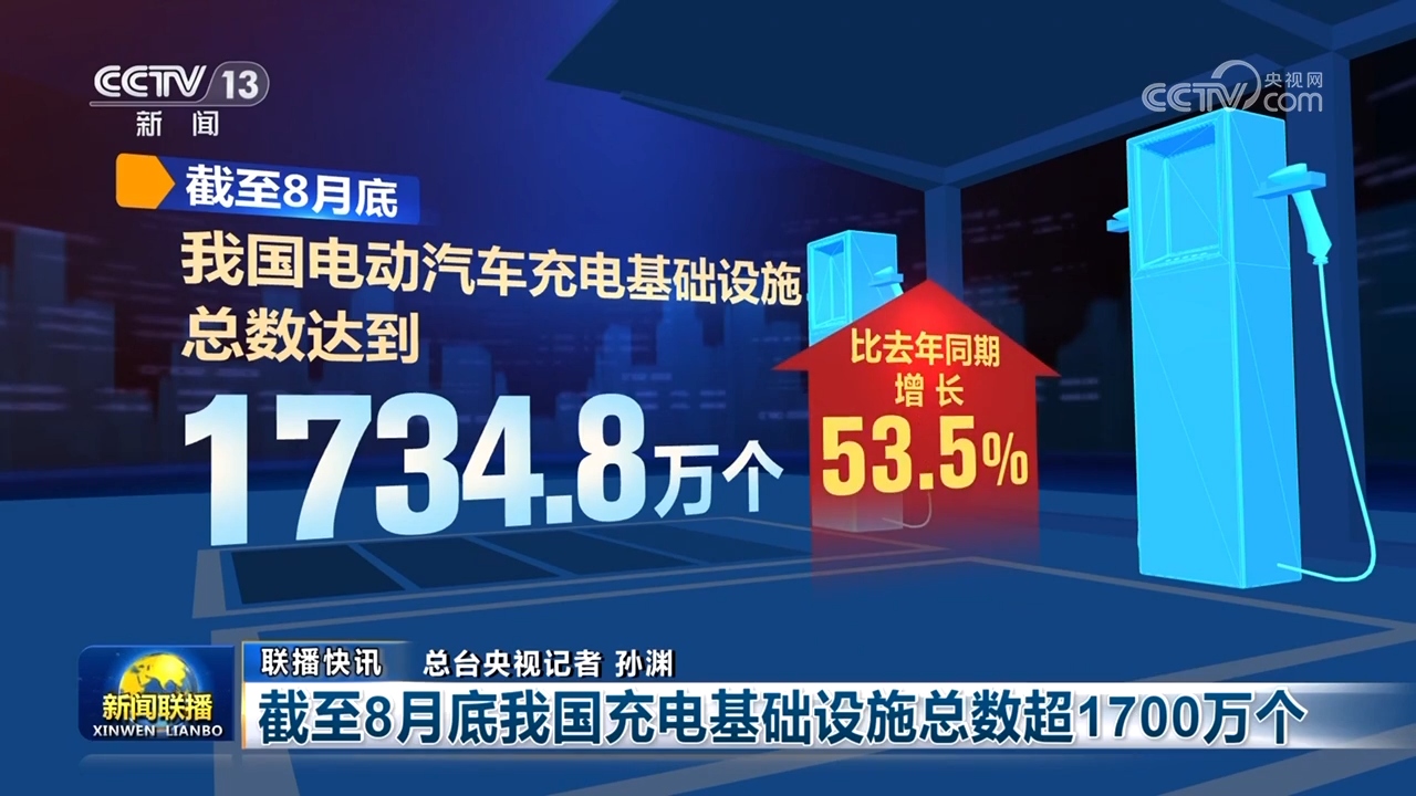 截至8月底我國充電基礎(chǔ)設(shè)施總數(shù)超1700萬個(gè)