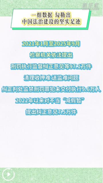 一組數(shù)據(jù),勾勒出中國法治建設(shè)的堅(jiān)實(shí)足跡:2021年1月至2025年9月,檢察機(jī)關(guān)依法提出刑罰執(zhí)行監(jiān)督糾正意見等97.1萬件;清理收押難、送監(jiān)難問題,糾正判處監(jiān)禁刑罰罪犯未交付執(zhí)行9.6萬人;2022年以來對不當(dāng)“減假暫”提出糾正意見7.5萬件……