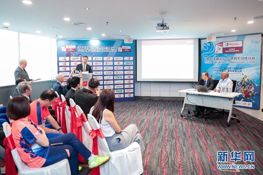 ↑7月17日,2018年羽毛球世錦賽抽簽儀式在馬來西亞吉隆坡舉行。本屆羽毛球世錦賽將于7月30日到8月5日在中國南京舉行。這是抽簽儀式現(xiàn)場。 新華社記者朱煒攝