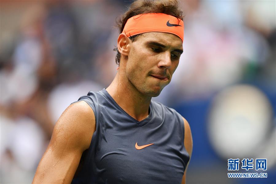9月7日,納達(dá)爾在比賽中。 當(dāng)日,在2018美國(guó)網(wǎng)球公開(kāi)賽男單半決賽中,西班牙選手納達(dá)爾在大比分0比2落后時(shí)因傷退賽,阿根廷選手德?tīng)柌ㄌ亓_晉級(jí)決賽。 新華社記者劉杰攝