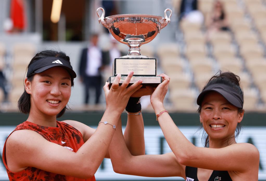 這僅是王欣瑜和謝淑薇搭檔以來參加的第二站賽事。倆人是在一個月前的意大利公開賽時遇到并臨時決定配對雙打。法網(wǎng)前一周的斯特拉斯堡公開賽是她倆搭檔的首秀,當時止步第二輪。來到羅蘭·加洛斯,這對“海峽組合”一路過關(guān)斬將,連續(xù)淘汰5對種子選手,最終問鼎冠軍。