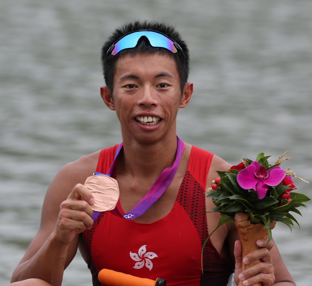 在男子單人雙槳決賽中,36歲的老將張亮蟬聯(lián)冠軍。張亮在出發(fā)后一“艇”當(dāng)先,1500米過后已領(lǐng)先第二名4秒96,雖然他在最后500米時速度有所下降,但依舊憑借著前半程巨大的領(lǐng)先優(yōu)勢,以6分57秒06強勢奪金。上屆亞運會該項目銅牌得主、日本選手荒川龍?zhí)@得亞軍,中國香港隊運動員趙顯臻摘得銅牌。