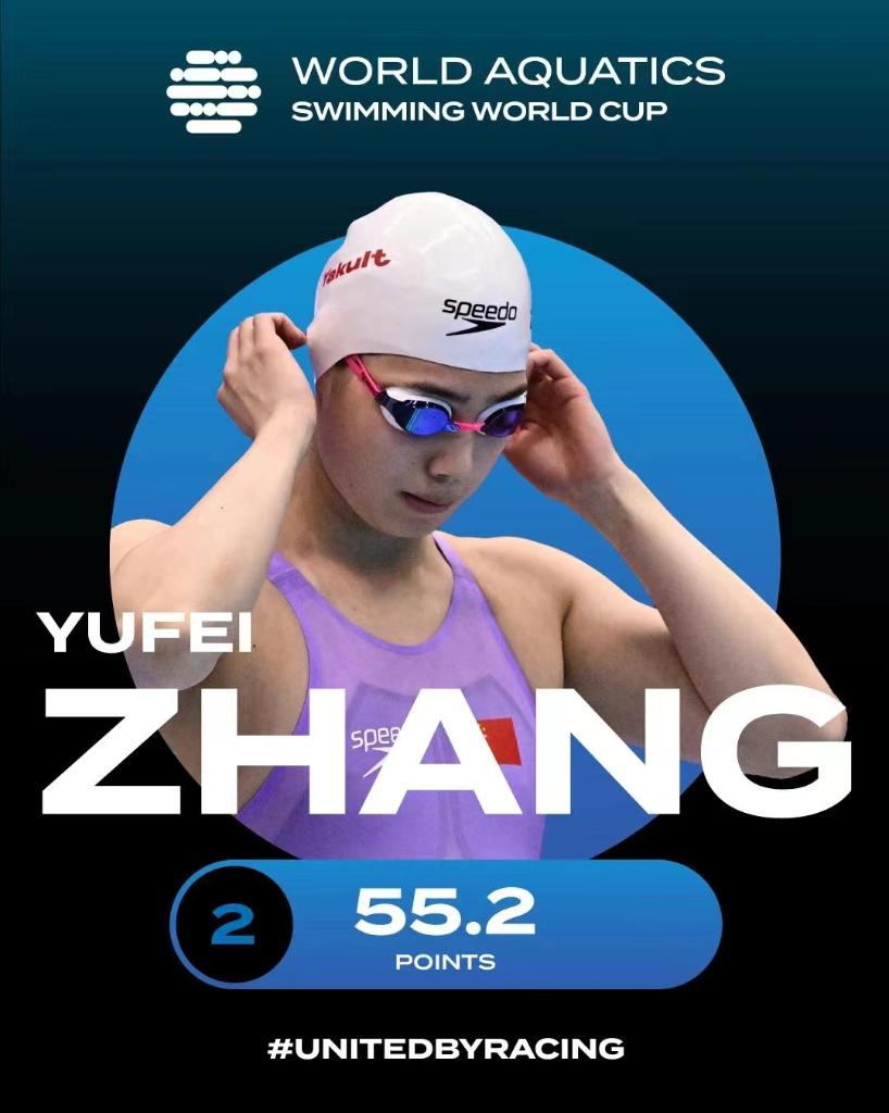 繼世錦賽、大運會和亞運會后“連軸轉”的“勞?!睆堄牿瓟埖门?00和200米蝶泳金牌,在50米蝶泳中不敵世界紀錄保持者舍斯特倫摘得銀牌,在本站女子組積分榜上尾隨麥基翁排第二位。