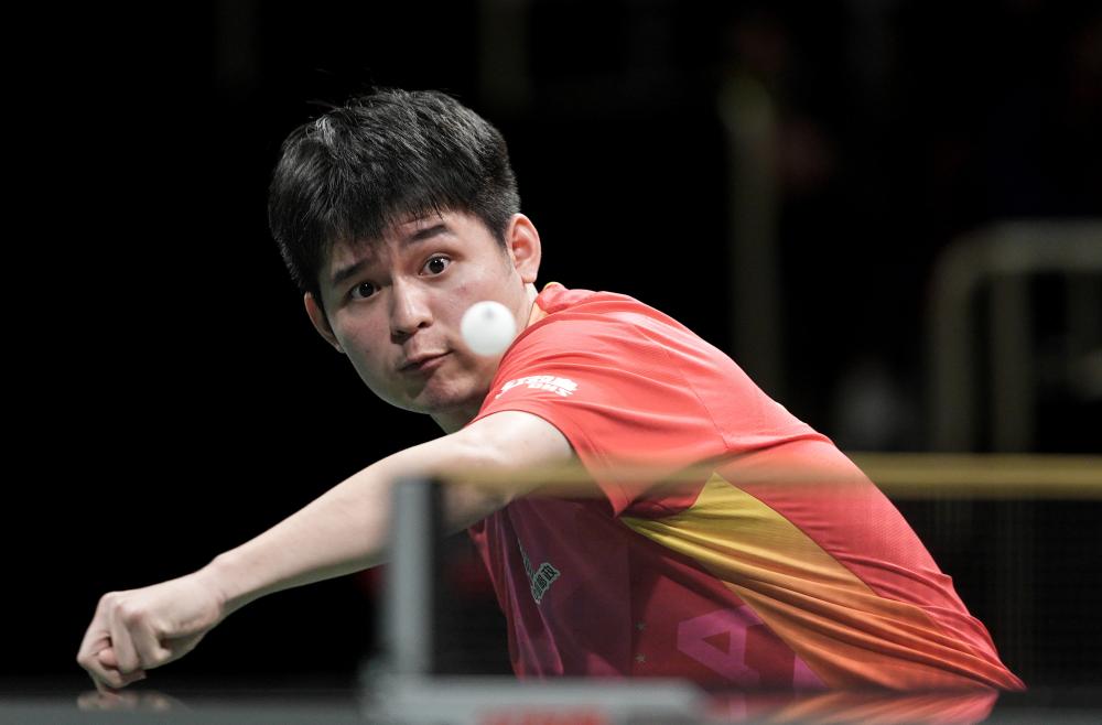 12月8日,中國隊選手林詩棟在男單比賽中。新華社記者 江宏景 攝