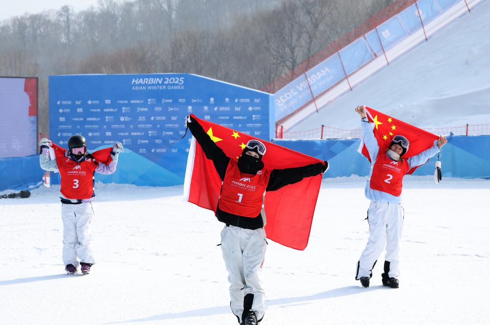 該項(xiàng)目原定于13日舉辦,因天氣原因提前。首輪劉夢(mèng)婷第一個(gè)出發(fā),前一日收獲坡面障礙技巧冠軍的她頂住壓力,以一套倒滑出發(fā)的高難度動(dòng)作拿到91.75分,第二輪她又拿到83.75分,以175.50分的總成績(jī)提前鎖定冠軍。韓林杉和楊如意分別以162.75分和159.50分的總成績(jī)分獲二、三名。
