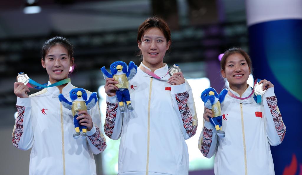 跆拳道也在當(dāng)日結(jié)束全部比賽,中國隊在該項目上共獲4金2銀3銅。在跆拳道女子團(tuán)體競技比賽中,由郭清、穆文喆、邢佳妮組成的中國隊延續(xù)強勢表現(xiàn),從16強賽一路以三場2:0橫掃晉級,并在當(dāng)日決賽中以同樣比分戰(zhàn)勝韓國隊,奪得冠軍。