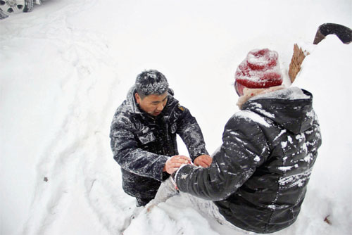 接到110指揮中心救援指令后,民警立即整裝出發(fā),并在途中與報警人周女士取得了聯(lián)系。車輛行至山間,救援難度超出了想象,整個山上都被大雪籠罩,白茫茫的一片,報警人也說不清自己遇險的具體位置。救援民警想到與報警人通過微信聯(lián)系,獲得位置共享。在得到大概位置后,車輛卻遇到冰雪無法前行,救援民警只能徒步前往,在被冰雪覆蓋的山路上一腳深一腳淺地行走,也記不清一路上跌跌撞撞摔倒了幾次,眼看著快接近信息顯示位置了,卻無法準(zhǔn)確定位,只能繼續(xù)聯(lián)系報警人,讓她試著喊幾聲,以便確定具體方位,聽到聲音后,民警順著聲音方向前進,經(jīng)過一個多小時的艱難跋涉,終于在去往鳳林寺半山腰的樹林里找到了周女士。簡單了解了周女士傷情后,民警康艷軍小心翼翼地把周女士一路背下了山,令其脫離了險境。