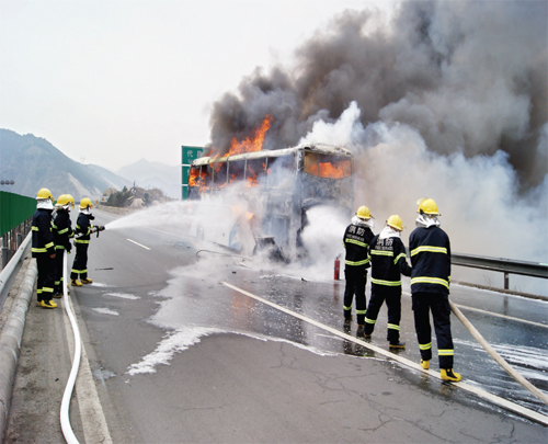4月6日上午10時13分,雁門關隧道應急隊接到監(jiān)控室報警,G55二廣高速太原方向白草口隧道附近一輛車牌為冀G-B0777載人大巴發(fā)生自燃。隧道應急隊接到報警后,立刻出動一輛泡沫水罐消防車,應急隊員11名,以最快的速度趕往事故現場,看到車輛正冒著滾滾的濃煙,車上乘客已全部安全撤離。經過3小時奮戰(zhàn),終于將大巴車火災撲滅,此次事故未造成人員傷亡。(羅福新)