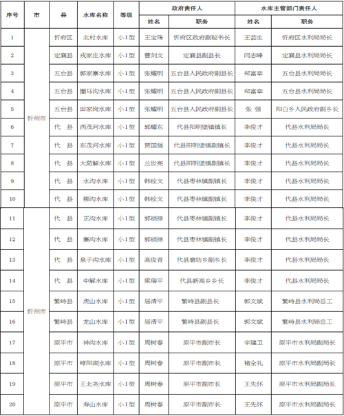 2016 年忻州市小型水庫大壩安全責任人