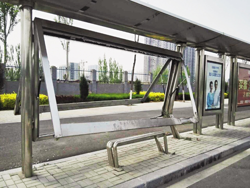 見(jiàn)到記者拍照,一位巡邏民警說(shuō),這個(gè)站牌是前兩天被車(chē)撞壞的,因?yàn)槭切侣?,公交站牌還未投入使用。這條道路行人車(chē)輛稀少,肇事車(chē)輛已不知去向,也沒(méi)有目擊者。一位開(kāi)車(chē)路過(guò)此處的司機(jī)說(shuō),這么漂亮的站牌,被車(chē)撞成這樣,看著讓人心疼,希望有關(guān)部門(mén)加強(qiáng)監(jiān)管,嚴(yán)格懲罰力度。同樣,廣大市民也應(yīng)積極行動(dòng)起來(lái),愛(ài)護(hù)公共設(shè)施,維護(hù)候車(chē)環(huán)境。圖為云中北路慘遭破壞的公交站牌(張志遠(yuǎn) 孫明)