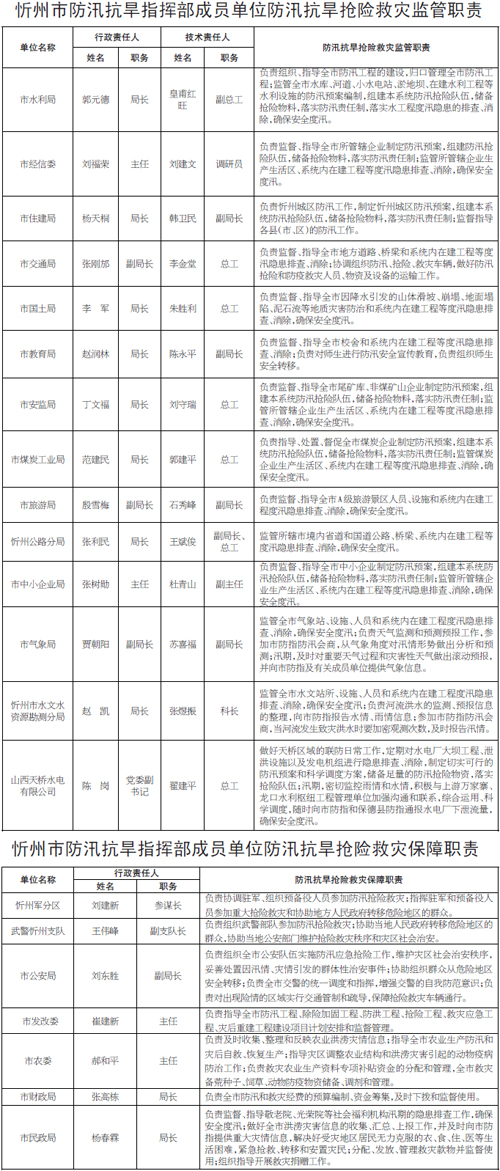 忻州公布今年防汛抗旱責(zé)任人暨工作職責(zé)