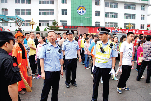 市公安局副局長(zhǎng)、交警支隊(duì)長(zhǎng)袁小波在高考現(xiàn)場(chǎng)指揮調(diào)度