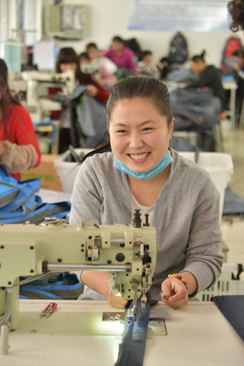 加工背包的易地搬遷貧困戶臉上滿是笑容。
