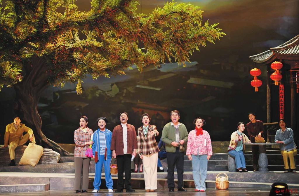 演出當(dāng)天,現(xiàn)場座無虛席,在演員的深情演繹中,一幅波瀾壯闊的時代畫卷躍然眼前。劇情跨越1979年至2019年40年時光,細膩講述了一代民歌王何長歌和他的女兒何娟娟兩代民歌人薪火相傳,在保護、傳承和發(fā)展河曲民歌二人臺過程中不懈奮斗的感人故事。數(shù)十首或磅礴大氣、或婉轉(zhuǎn)悠揚、或輕松歡快的歌曲貫穿劇中,借助布景、燈光、服裝、效果、道具等舞美設(shè)計,該劇將河曲文化習(xí)俗、方言等特色元素“搬上”舞臺,為觀眾呈上一場精彩絕倫的視聽盛宴。