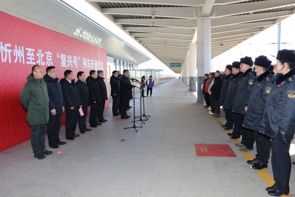 忻州至北京“復(fù)興號”列車的開通,極大地拉近了忻州與首都北京的時空距離,為忻州促進資源、人才、信息等要素的流通創(chuàng)造了前所未有的新機遇。李建國致辭時表示,地方將全面落實屬地責(zé)任,加強協(xié)同配合,服務(wù)保障“復(fù)興號”列車安全持續(xù)穩(wěn)定運行。同時借助“復(fù)興號”列車跨省通行、連點成線的獨特優(yōu)勢,加大忻州良好發(fā)展環(huán)境、獨特資源稟賦的宣傳推介力度,讓更多的人了解忻州、關(guān)注忻州、走進忻州;充分發(fā)揮“復(fù)興號”列車通行賦予忻州區(qū)位交通的新優(yōu)勢,鼓勵支持廣大干部和企業(yè)家走向外界、開闊眼界,在招商引資、招才引智等方面尋求更多合作。相信在中鐵太原局集團公司的大力支持下,隨著“復(fù)興號”列車的開通及過境高鐵車次的增多,忻州必將成為全國高鐵網(wǎng)絡(luò)的重要節(jié)點城市。