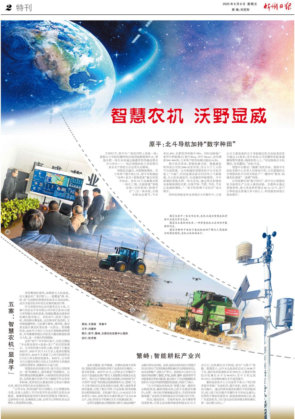 芒種時(shí)節(jié),原平市廣袤的田野上景象一新:搭載北斗導(dǎo)航的播種機(jī)沿規(guī)劃線路精準(zhǔn)作業(yè),智能水肥一體化系統(tǒng)通過滴灌帶悄然輸送著水分與養(yǎng)分……一場由智慧農(nóng)機(jī)主導(dǎo)的現(xiàn)代農(nóng)業(yè)生產(chǎn)圖景正在這里生動(dòng)展現(xiàn)。