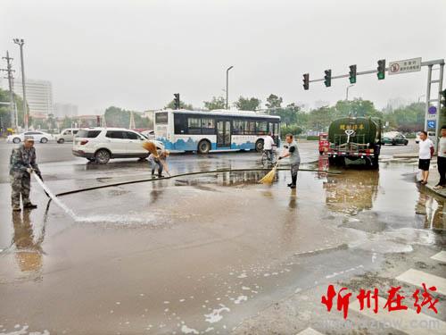 據(jù)了解,為了確保城區(qū)道路干凈整潔,市環(huán)衛(wèi)處組織工人,利用早晚車少人少時段,對城區(qū)街道進行定期清洗。也希望他們的行為,進一步喚起公眾對城市的熱愛,從而推動城市文明建設(shè)不斷向前發(fā)展,共同創(chuàng)造清潔、文明、和諧的市容環(huán)境。圖為環(huán)衛(wèi)工人正在清洗街道 張志遠攝