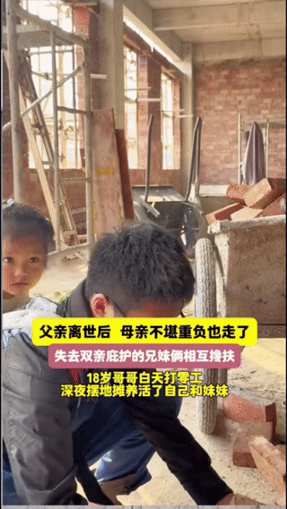 “18歲哥哥白天背著妹妹雙腳赤裸著在工地搬磚、深夜還要擺地攤,失去雙親庇護(hù)的兄妹倆相互攙扶……”