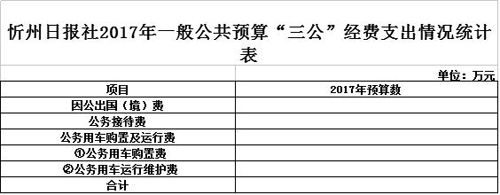 忻州日報(bào)社2017年度部門預(yù)算及“三公”經(jīng)費(fèi)預(yù)算公開情況