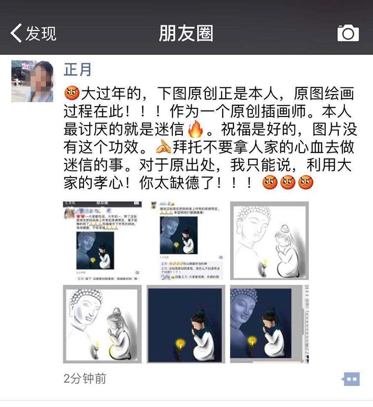 @正月插畫師在聲明中還特別強調(diào):自己很討厭迷信,這畫火的十分突然。那些利用大家的孝心的人!太缺德了?。?!