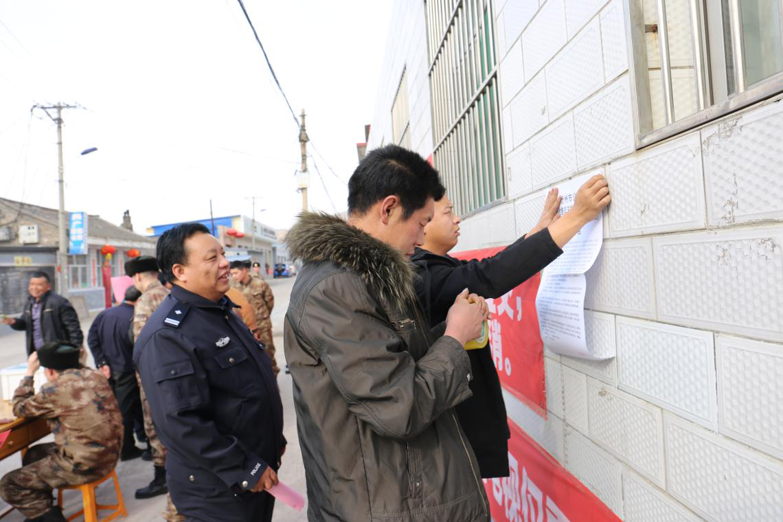 駐地派出所民警張貼《打擊涉槍支毒品爆炸物品等違法犯罪活動的通告》。劉志剛 攝