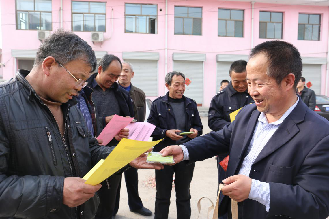 駐地郵局領(lǐng)導(dǎo)向村民派發(fā)指甲刀、鑰匙扣、卡包等紀(jì)念品。劉志剛 攝