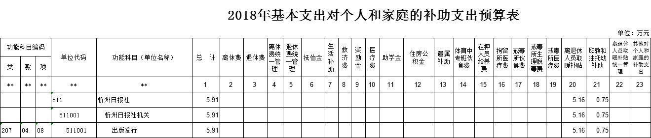 7、基本支出對個(gè)人和家庭的補(bǔ)助支出預(yù)算表
