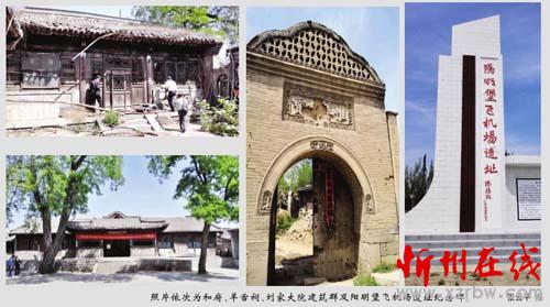 2000多年來,陽明堡歷經(jīng)無數(shù)次戰(zhàn)火、自然災害及人為破壞,如今輝煌時期的風貌早已不存在,但畢竟還是留下了一些歷史遺存,著名的有廣武古城、羊舌祠、劉家祠堂、和府、馬站戲樓、李克用墓、白人巖以及陽明堡飛機場遺址紀念碑等,并扛起中國歷史文化名鎮(zhèn)的名聲。