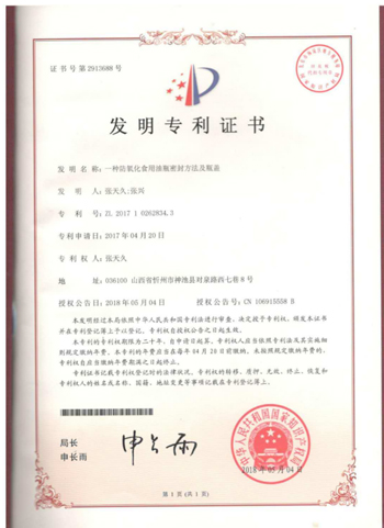 發(fā)明者張興父子從2010年創(chuàng)辦山西省神池縣糧油機械研究所以來,共獲國家專利24,其中發(fā)明4項?!笆秤糜涂寡趸b”是最近的一項科研成果。張興告訴記者,為了防止氧化,市面上的食用油絕大多數(shù)采用添加抗氧化劑,同時使用小包裝。而神池胡油,從不添加抗氧化劑。實驗證明,零星食用不出一個月氧化值就會超過標準,日久愈甚。使用這個新發(fā)明的食用油包裝,存儲和食用期達到2年之久,氧化值為5.5,仍在GB/T5538標準≤6范圍之內(nèi)。