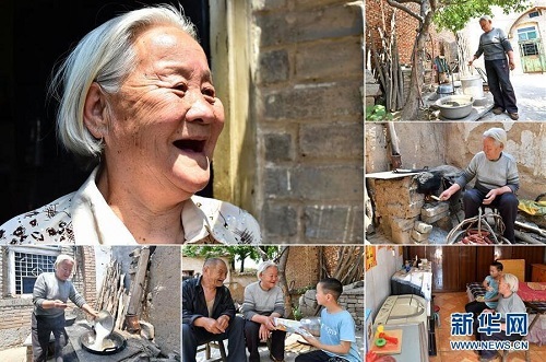 田何英,女,1949年出生,山西省長治市潞城區(qū)上黃村人,全家人靠種植5畝糧食地過日子,家人的重病使其陷入貧困。2015年開始,田何英和家人享受種植產(chǎn)業(yè)補(bǔ)貼和金融扶貧補(bǔ)貼,孫子上學(xué)享受“雨露計(jì)劃”補(bǔ)貼。2017年,田何英家脫了貧。 左上:田何英肖像;右上:田何英在院子里;右中:田何英在生火做飯;右下:田何英和孫子一起看電視;下中:田何英(中)和家人在院子里;下左:田何英在做飯(拼版照片,6月11日攝)。 地處晉東南的山西省長治市,位于由太行山、太岳山環(huán)繞而成的上黨盆地中。在群山中、崖壁上,許多村莊自然條件惡劣,基礎(chǔ)設(shè)施落后,脫貧致富是大山深處人們的迫切心愿。 近年來,一場場脫貧攻堅(jiān)戰(zhàn),在一個(gè)個(gè)深山村打響。政府全力探索脫貧路徑的同時(shí),山區(qū)百姓因地制宜,靠自己的雙手和智慧走上致富路,交出了一份扎實(shí)的脫貧答卷。 記者在太行山、太岳山一路尋訪,記錄下多位70歲老人的生活。這些共和國的同齡人,親歷了山鄉(xiāng)的巨變,見證著長治山區(qū)脫貧攻堅(jiān)偉大工程的一步步推進(jìn)。 新華社記者 曹陽 攝
