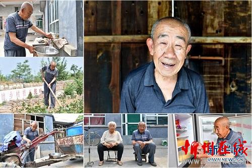 郭中其,男,1949年出生,山西省長治市潞城區(qū)常村人,全家6口人靠種地為生,因家人重病而造成生活困難。被納入建檔立卡貧困戶后,郭中其家人治病的花銷顯著減少,子女參加了免費技能培訓(xùn)并找到了工作,家里的生活條件得到了改善,2017年全家脫了貧。 右上:郭中其肖像;左上:郭中其在院子里接水;左中:郭中其在田地里鋤草;左下:郭中其在擦拭拖拉機;下中:郭中其和老伴坐在院子里;下右:郭中其從冰箱里拿出西紅柿(拼版照片,6月12日攝)。 地處晉東南的山西省長治市,位于由太行山、太岳山環(huán)繞而成的上黨盆地中。在群山中、崖壁上,許多村莊自然條件惡劣,基礎(chǔ)設(shè)施落后,脫貧致富是大山深處人們的迫切心愿。 近年來,一場場脫貧攻堅戰(zhàn),在一個個深山村打響。政府全力探索脫貧路徑的同時,山區(qū)百姓因地制宜,靠自己的雙手和智慧走上致富路,交出了一份扎實的脫貧答卷。 記者在太行山、太岳山一路尋訪,記錄下多位70歲老人的生活。這些共和國的同齡人,親歷了山鄉(xiāng)的巨變,見證著長治山區(qū)脫貧攻堅偉大工程的一步步推進(jìn)。 新華社記者 曹陽 攝