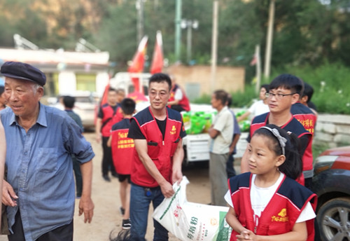 志愿者們分為6組,分別入戶走訪受災群眾。在走訪過程中,志愿者矦小峰帶著妻子和女兒,為災區(qū)群眾捐助衣物15余件。同時志愿者們還積極響應政府“消費扶貧”的號召,積極購買當?shù)厝罕娡岭u蛋百余斤,以個人消費為貧困群眾增收脫貧奉獻一份真情、貢獻一份力量。 走訪結束后,經(jīng)開會確定有7戶受災比較嚴重,分別發(fā)放白面大米各一袋,其余受災戶每戶一袋白面,剩余米、面、班賢香醋等物資交予村委會按需發(fā)放。