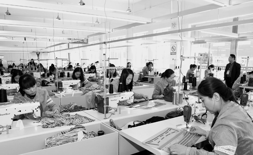 4月16日,河曲縣職業(yè)教育中心服裝加工車間里技術(shù)工人正在加班加點(diǎn)趕制夏季服飾。為促進(jìn)貧困勞動力轉(zhuǎn)移就業(yè),該縣職教中心去年引進(jìn)江蘇省常熟市祥鼎祥服飾有限公司,并與之簽訂校企合作協(xié)議,有效帶動農(nóng)村貧困勞動力轉(zhuǎn)移就業(yè)。目前已有83名經(jīng)過培訓(xùn)的農(nóng)村貧困婦女成為服裝加工技術(shù)工人,月收入2000多元。(鄔耿杰 攝)