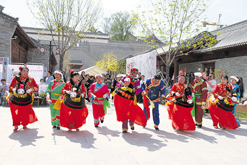 首期市集為期三天,今后將不定期舉辦此類活動(dòng),為全國各地的民間藝人提供一個(gè)創(chuàng)業(yè)、立業(yè)的平臺(tái),同時(shí)也為秀容古城的旅游發(fā)展注入新的活力,打造秀容古城旅游發(fā)展新地標(biāo)。圖為創(chuàng)意市集上的民俗表演張林泉李春達(dá)攝影報(bào)道