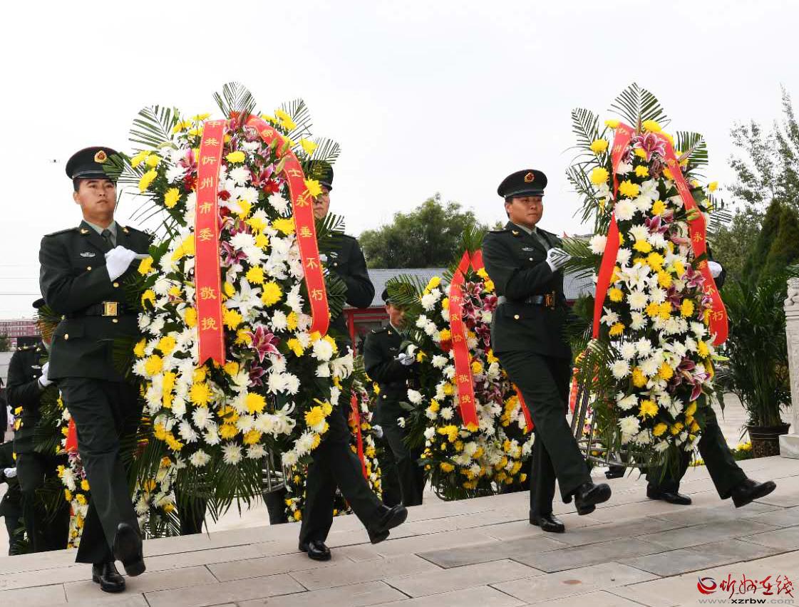 廣場上,部隊官兵、武警官兵、公安民警、學校師生、機關干部、社會團體和志愿者代表等社會各界人士整齊列隊、靜靜肅立。市四大班子領導、忻州軍分區(qū)領導、忻府區(qū)四大班子領導及人民團體和各界社會群眾代表敬獻的花籃依次擺放在紀念碑基座前廣場上。
