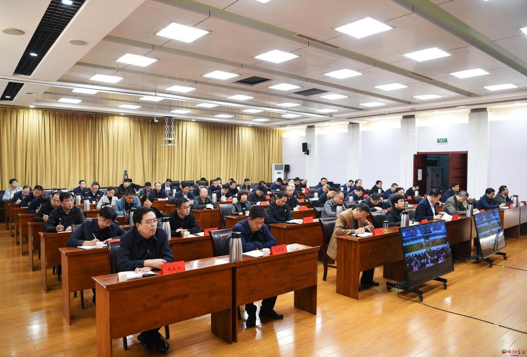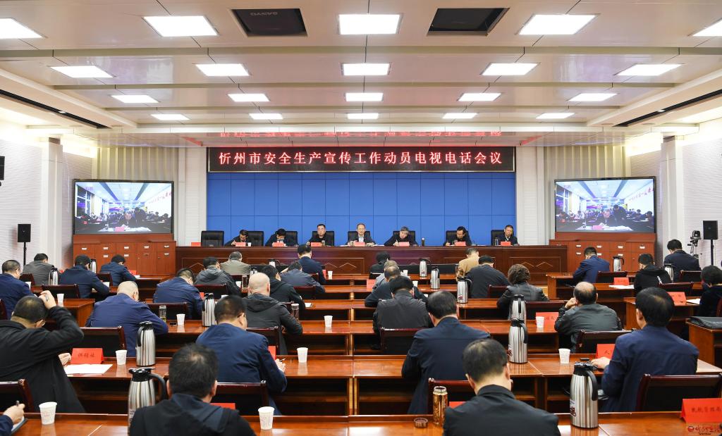 忻州市安全生產(chǎn)宣傳工作動員電視電話會議會場。劉紀(jì)森 攝
