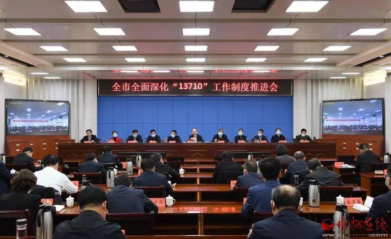 本報(bào)訊 (記者楊峰雷) 2月18日,市委召開全市全面深化“13710”工作制度推進(jìn)會(huì)。市委書記鄭連生主持會(huì)議并講話。他強(qiáng)調(diào),要深入學(xué)習(xí)貫徹習(xí)近平總書記關(guān)于抓落實(shí)的重要論述,全面貫徹落實(shí)省委召開的全面深化“13710”工作制度推進(jìn)會(huì)精神,充分發(fā)揮“13710”工作制度作用,不斷提升工作質(zhì)量和水平,確保中央、省委、市委各項(xiàng)決策部署及時(shí)落地見效,全力推動(dòng)忻州高質(zhì)量高速度趕超型跨越式發(fā)展,確保忻州“十四五”開好局起好步。市委副書記、市長(zhǎng)朱曉東講話。市委副書記、宣傳部長(zhǎng)郭奔勝,市人大常委會(huì)主任王珍,市政協(xié)主席王建廷,市領(lǐng)導(dǎo)劉卓良、秦書義、崔建新、劉婷芳、劉瑞生、王月娥、武憲堂、裴峰、范建民、賈玲香出席會(huì)議。副市長(zhǎng)、市政府秘書長(zhǎng)郭寶厚通報(bào)全市“13710”工作制度有關(guān)情況。
