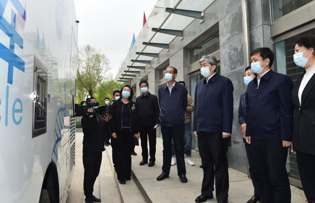 在市疾控中心察看移動(dòng)P2+核酸檢測車的使用情況。馮曉磊 攝