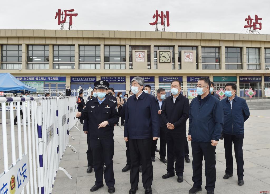 在忻州火車站調(diào)研來忻返忻人員“點(diǎn)對(duì)點(diǎn)”接返和隔離管控等工作落實(shí)情況。馮曉磊 攝