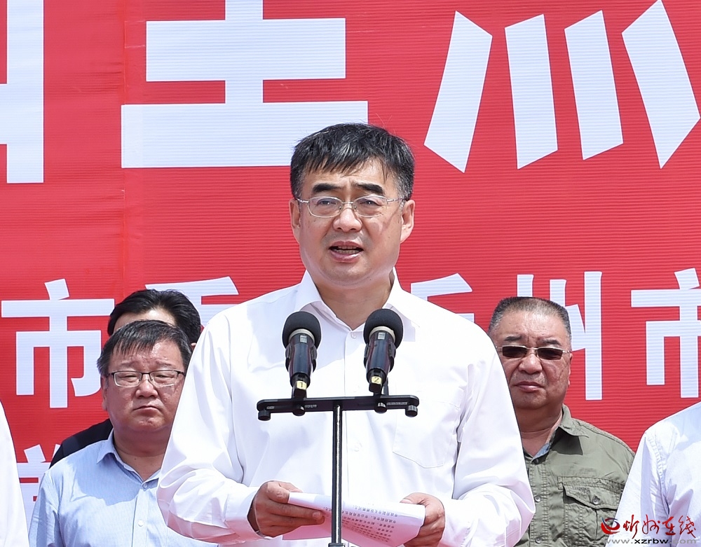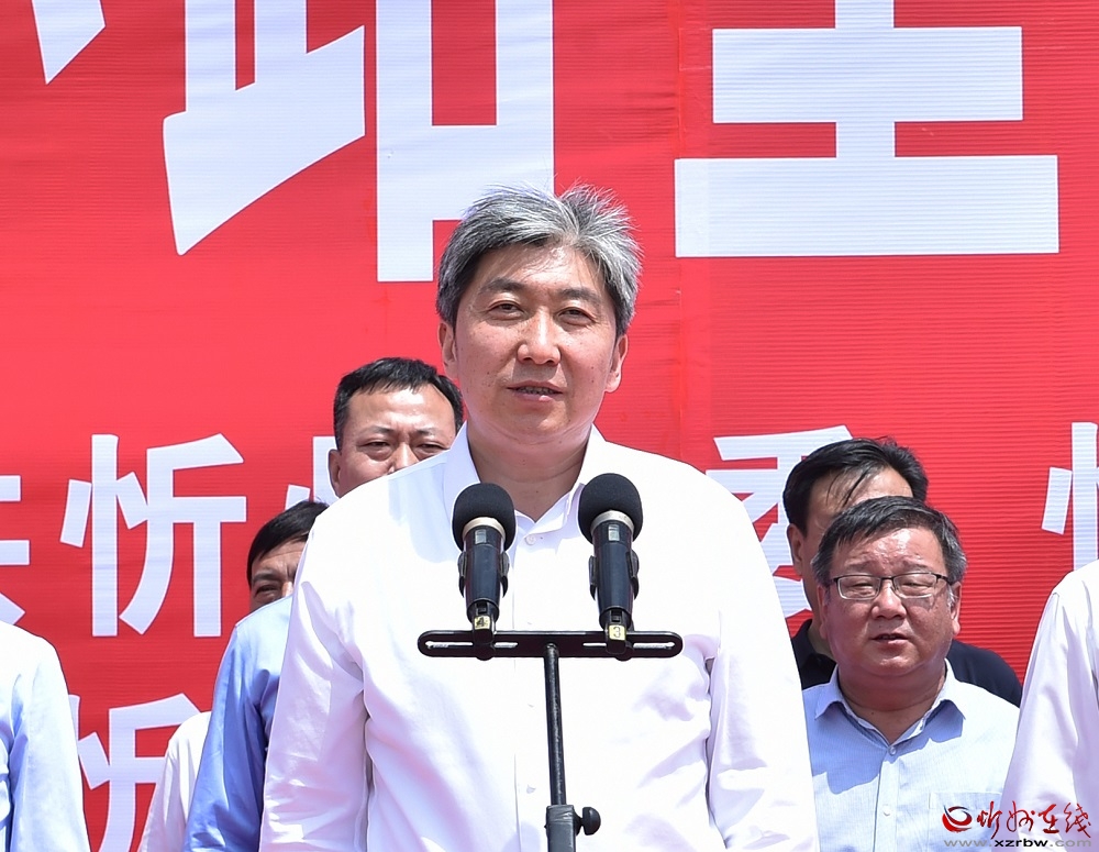 啟動儀式上,朱曉東、李建國、郭奔勝、王珍、范建民分別為各指揮部授旗。原平市市長、定襄縣縣長、市交通運輸局局長分別就忻原大道將軍山隧道控制性工程和忻原大道跨朔黃鐵路、滹沱河大橋控制性工程及太忻大道跨二廣高速控制性工程建設(shè)作表態(tài)發(fā)言。