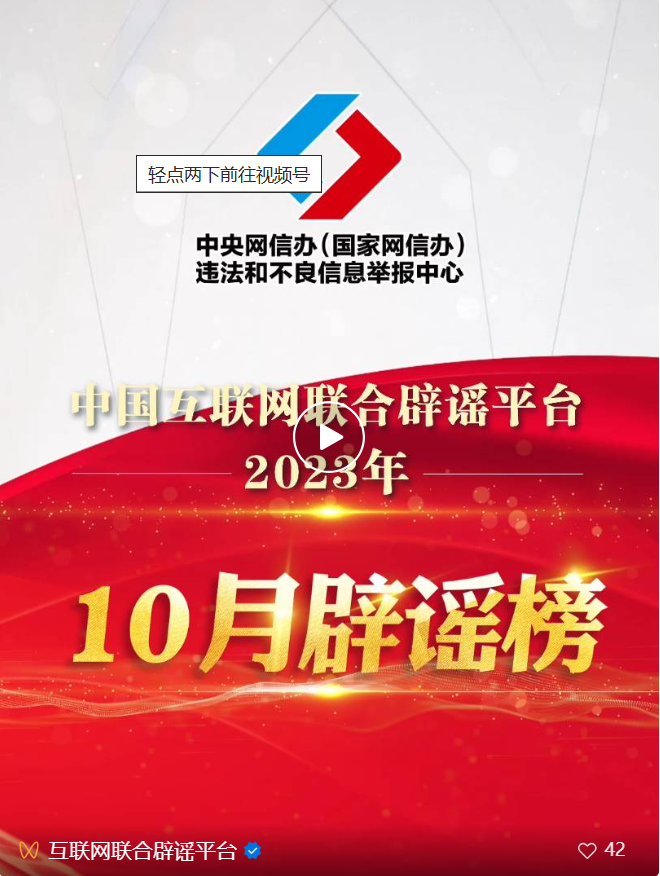 打擊網(wǎng)絡(luò)謠言 共建清朗家園 中國互聯(lián)網(wǎng)聯(lián)合辟謠平臺2023年10月辟謠榜