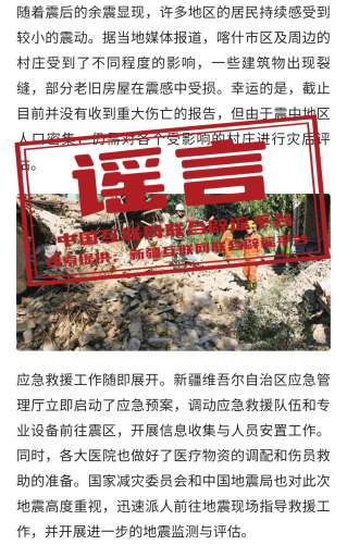 謠言:新疆喀什發(fā)生6.3級(jí)地震?