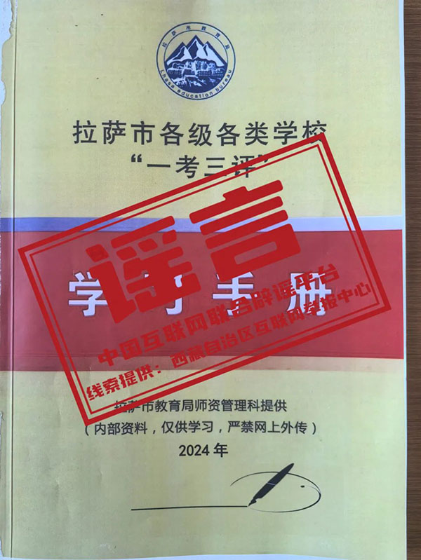 詳情:近期,西藏自治區(qū)拉薩市教育局接到教師反饋,稱有人以拉薩市教育局師資管理科名義,以50元/本的價(jià)格,售賣2024年《拉薩市各級(jí)各類學(xué)校“一考三評(píng)”學(xué)習(xí)手冊(cè)》。對(duì)此,拉薩市教育局發(fā)布辟謠聲明稱:我局2024年未印發(fā)“一考三評(píng)”學(xué)習(xí)手冊(cè),未委托任何機(jī)構(gòu)和個(gè)人以任何形式向教師售賣2024年《拉薩市各級(jí)各類學(xué)?!耙豢既u(píng)”學(xué)習(xí)手冊(cè)》。請(qǐng)廣大教師保持高度警惕,不信謠、不傳謠、不造謠,謹(jǐn)防上當(dāng)受騙。(來(lái)源:“西藏舉報(bào)”微信公眾號(hào)、“拉薩教育”微信公眾號(hào))