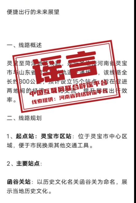 真相:近日,有自媒體賬號(hào)在互聯(lián)網(wǎng)平臺(tái)發(fā)布“靈寶到菏澤的地鐵”相關(guān)信息,稱“該線路全長(zhǎng)約300公里,預(yù)計(jì)設(shè)立15個(gè)站點(diǎn)”“起點(diǎn)站為靈寶市區(qū)站,位于靈寶市中心區(qū)域”,引發(fā)關(guān)注。經(jīng)核實(shí),該消息系虛假信息。互聯(lián)網(wǎng)不是法外之地,請(qǐng)自覺遵守法律法規(guī),不造謠、不信謠、不傳謠。(來源:“清朗河南”微信公眾號(hào)、網(wǎng)信靈寶)