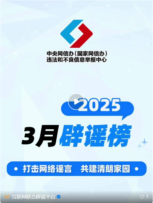 打擊網(wǎng)絡(luò)謠言 共建清朗家園 中國互聯(lián)網(wǎng)聯(lián)合辟謠平臺2025年3月辟謠榜