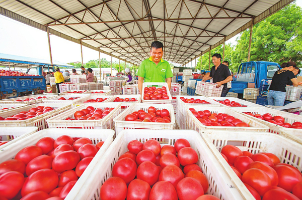 6月2日,夏縣廟前鎮(zhèn)楊村西紅柿喜迎大豐收,村民抓緊采摘包裝發(fā)往全國各地。該村已有20年種植西紅柿歷史,近年來經過產業(yè)結構調整、優(yōu)選育種,種植面積不斷擴大,西紅柿目前暢銷北京、上海、西安等地,菜農借此每畝可收入5000元以上。(楊建峰攝)