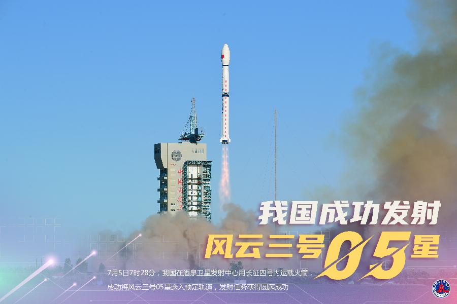 7月5日7時(shí)28分,我國(guó)在酒泉衛(wèi)星發(fā)射中心用長(zhǎng)征四號(hào)丙運(yùn)載火箭,成功將風(fēng)云三號(hào)05星送入預(yù)定軌道,發(fā)射任務(wù)獲得圓滿成功。新華社發(fā)(汪江波 攝)