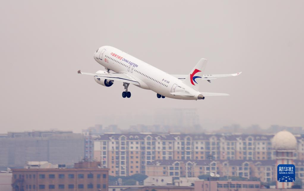 12月26日,國產(chǎn)大飛機(jī)C919在上海虹橋國際機(jī)場起飛。新華社發(fā)