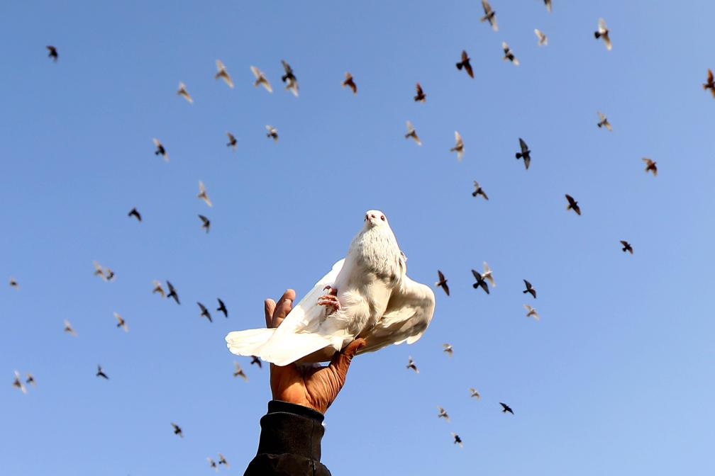 2023年1月29日,在埃及開羅,一名養(yǎng)鴿人放飛他的鴿子。新華社發(fā)(艾哈邁德·戈馬攝)